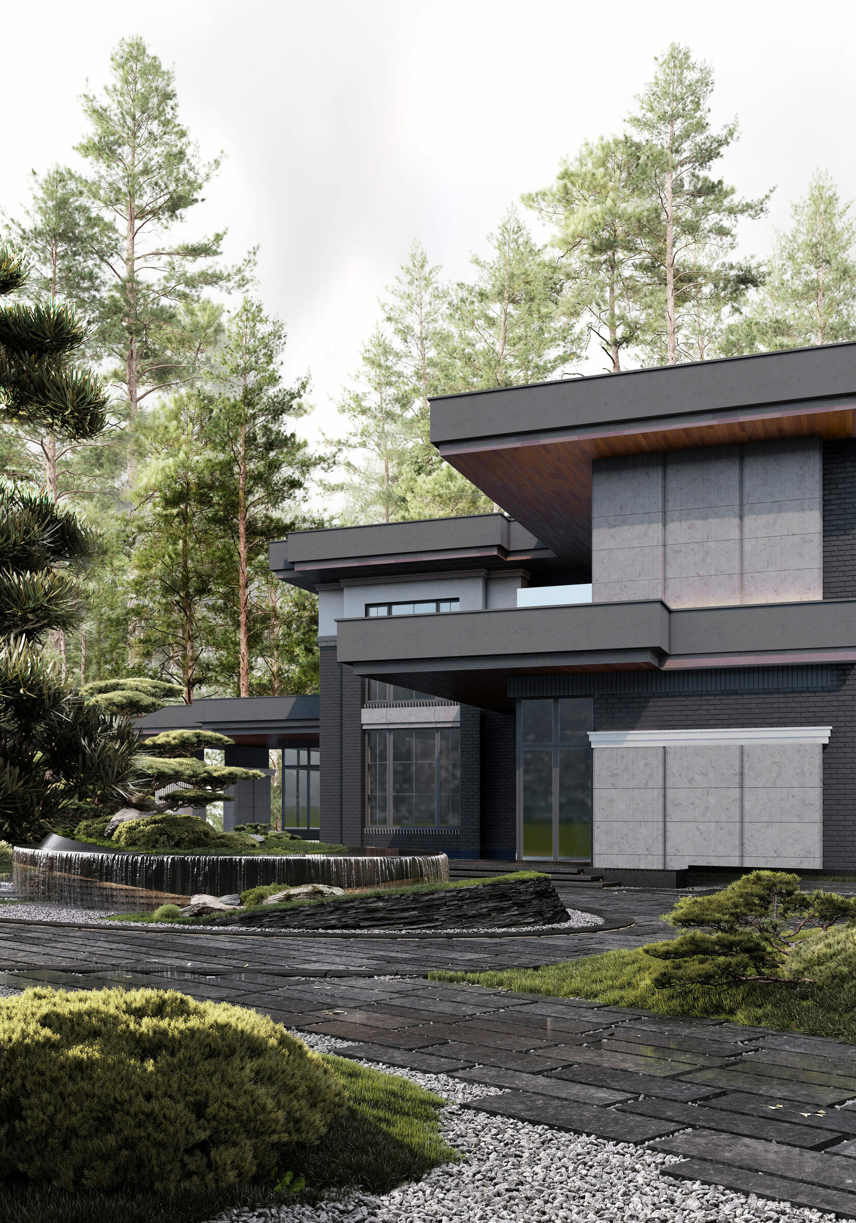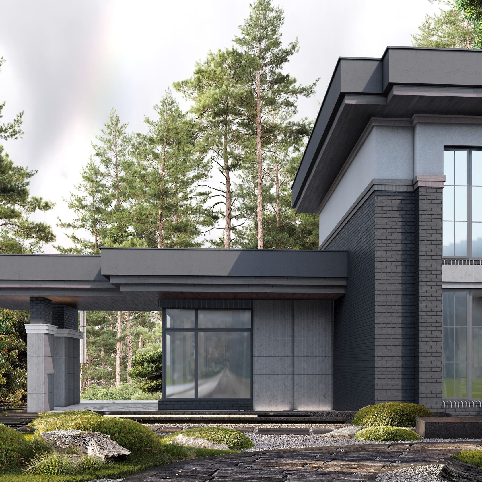 Жилой дом состоит из зоны гаража, жилой зоны и спа-зоны с сауной и комнатой отдыха. Реализуя комплексные проекты с нуля, мы непосредственно заботимся о том, чтобы экстерьер лаконично сочетался с интерьером, подчёркивая изысканный вкус своих владельцев.